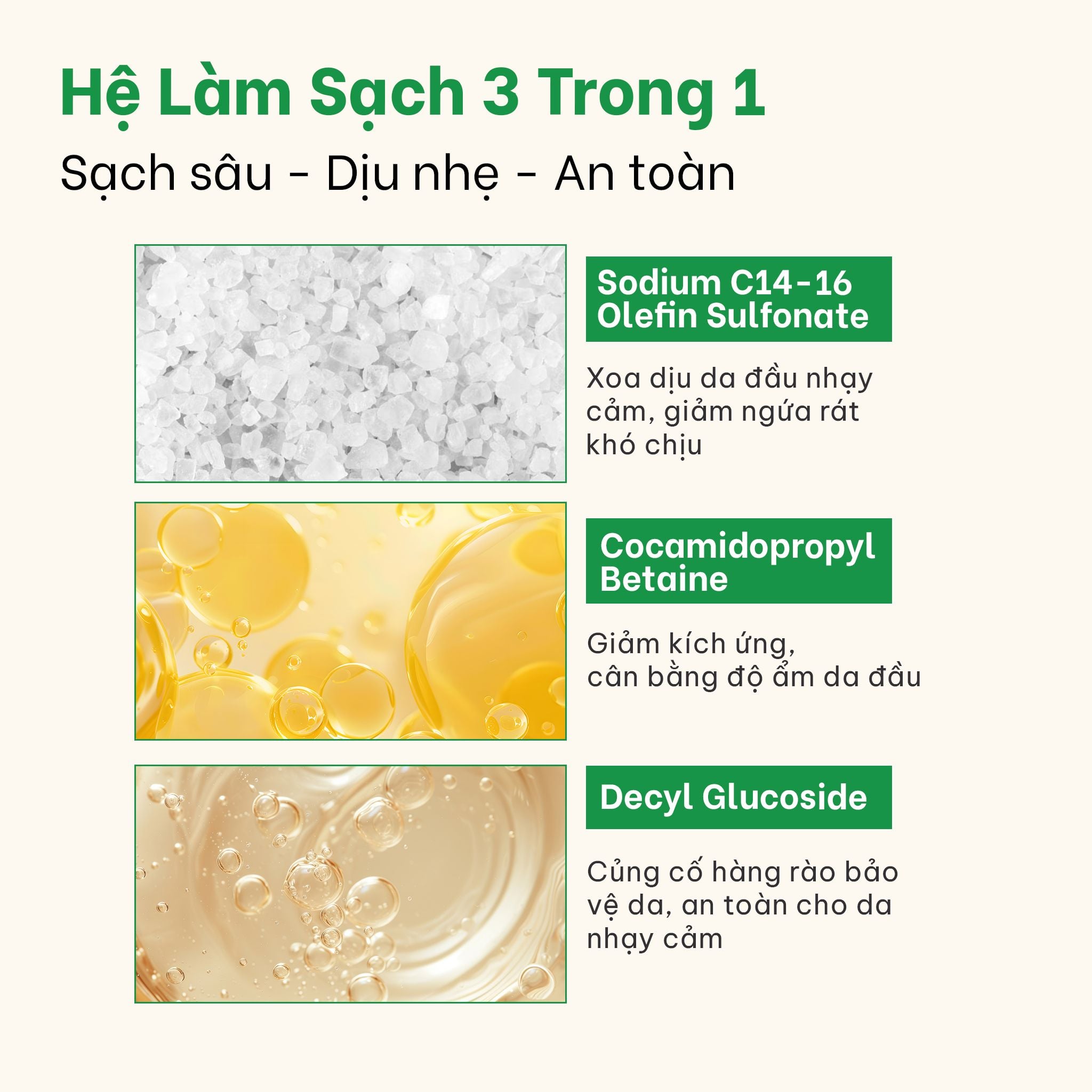 ✔ Giảm tóc bết & gàu, làm sạch da đầu